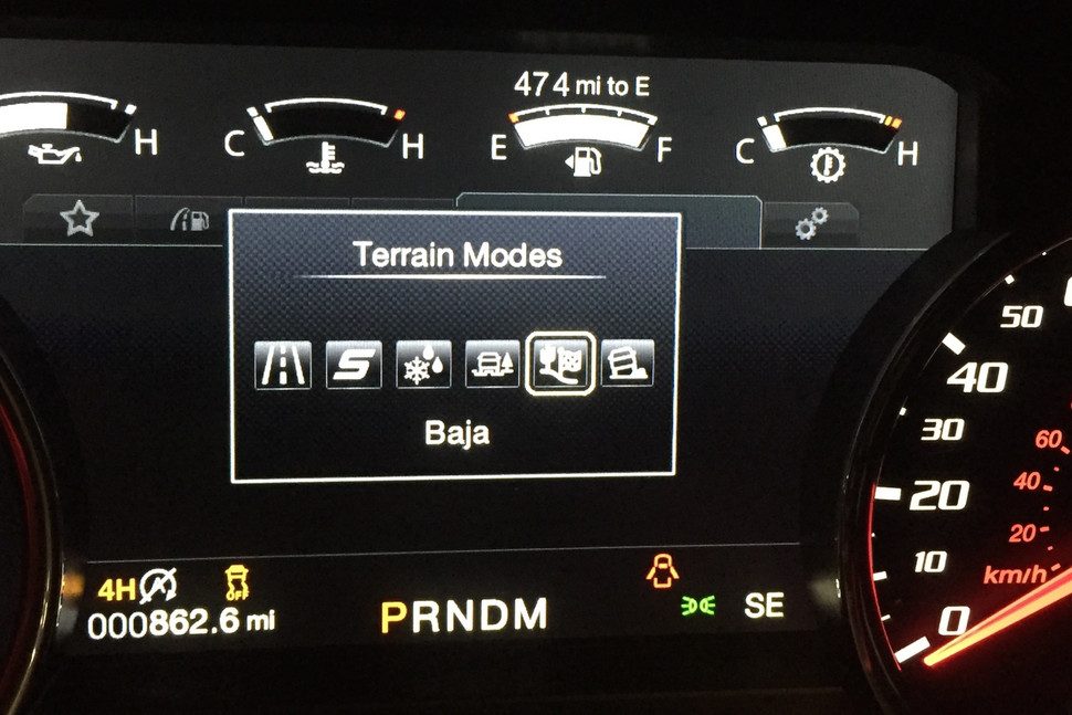 Por último, el modo de Baja está diseñado para la alta velocidad, disminuyendo la interferencia del control de tracción, acoplado al acelerador para así aumentar la capacidad de respuesta del motor, haciendo también que la transmisión entregue marchas más largas para mantener el motor en su nivel de potencia. Si alguna vez llegas a ser perseguido por hordas de bandidos post-apocalípticos, este es el modo que deberás usar.