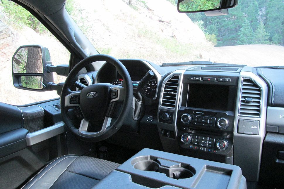 Los compradores pueden elegir entre dos corpulentos motores V8. El motor de gasolina de 6.2 litros produce 385 caballos de fuerza y 430 libras-pie de torque, mientras que el de 6.7 litros diesel Power Stroke genera 440 caballos de fuerza y un increíble 925 libras-pie de torsión. Ambos motores vienen con transmisiones automáticas de seis velocidades y tracción trasera o en las cuatro ruedas. El diesel, en particular, es un motor impresionante, con un montón de energía a todas las velocidades, y emite muy poco ruido y poca vibración, cosas ambas asociada a los motores diesel.