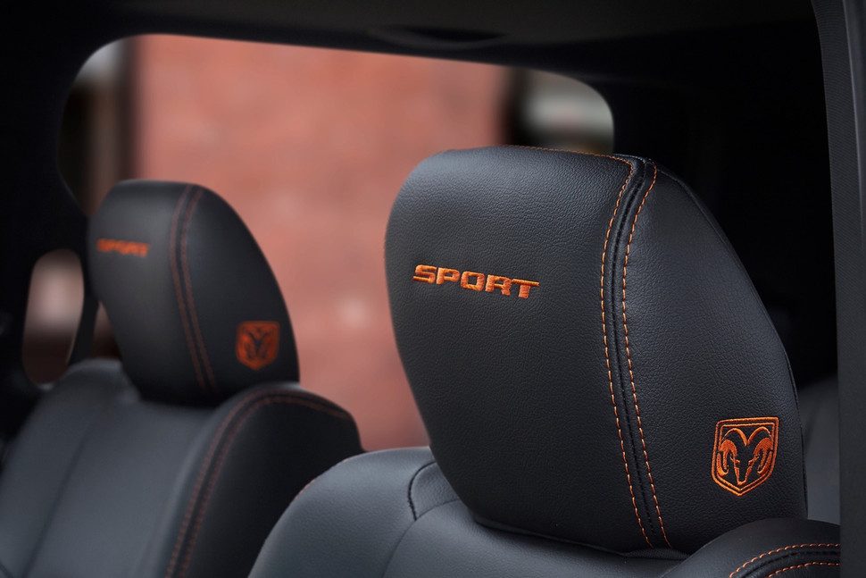 El interior es de color negro, con trazos de color cobre y costuras en el mismo tono. El logotipo de RAM y la palabra “Sport” están también bordadas en los reposacabezas, en caso de que se te olvide en qué camioneta estás montado. Además de los elementos de acabado, el modelo Sport Cooper también añade un sistema de audio Alpine de nueve bocinas con subwoofer.