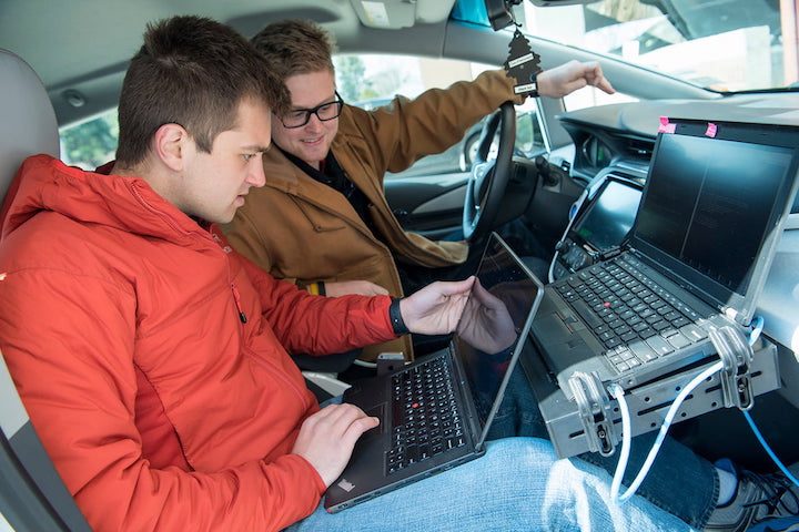 “Era responsabilidad de nuestro equipo poder montar de forma segura y eficiente todos los componentes que estábamos usando”, nos dijo Michera, “como las cámaras, el lidar y el radar, y los sistemas de GPS. Tuvimos que montarlos según las especificaciones que nuestros otros sub-equipos nos pedían. Las cámaras tenían que poder tener un ángulo de visión completo, al igual que nuestros radares y lidars. También nos aseguramos de que todas las conexiones y el cableado del vehículo estuviesen listos e instalados”.