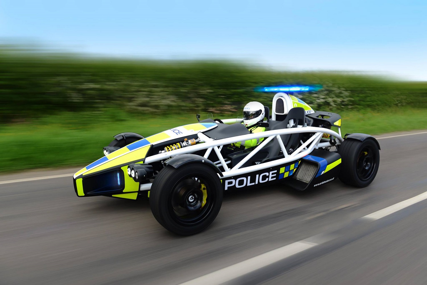 En 2014, el Departamento de Policía del Condado de Somerset compró un Ariel Atom 3.5R y lo vistió con todos los colores policiales, luces y equipo de emergencia. Es máquina de 350 caballos de fuerza y 1,350 libras (612 kilos), que desenfoca la línea entre un supercar y una motocicleta. Y, con un tiempo de cero a 60 mph (96 kmh) de 2.5 segundos, puede superar casi cualquier cosa en cuatro ruedas.