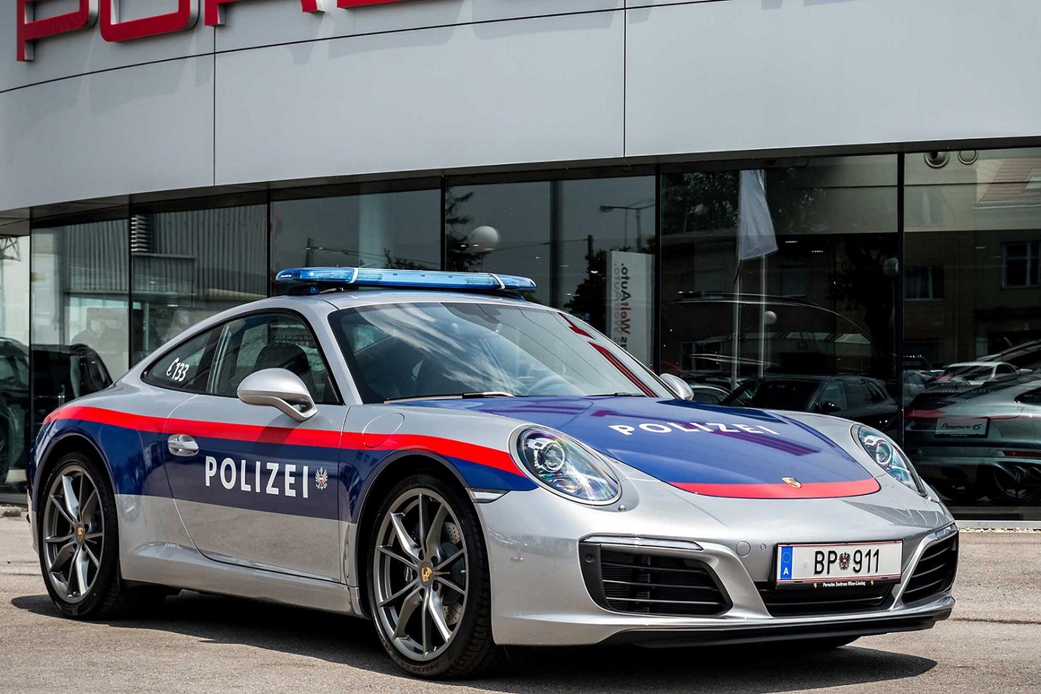 El departamento de policía austriaco recibió una patrulla Porsche 911 en 2017. Fue la última de una larga lista de 911 usados para atrapar a los conductores que circulaban a exceso de velocidad. Antes de presentarse para el servicio policial, el coupé recibió los colores azul y rojo que usan los carros de la policía austriaca más comunes, un sistema de radio y, por supuesto, luces azules intermitentes. Desde entonces, las fuerzas del orden han mantenido sus 911, pero cuidado si planeas conducir más allá de los límites, porque no nos sorprendería que el totalmente nuevo 911 se una a la flota.
