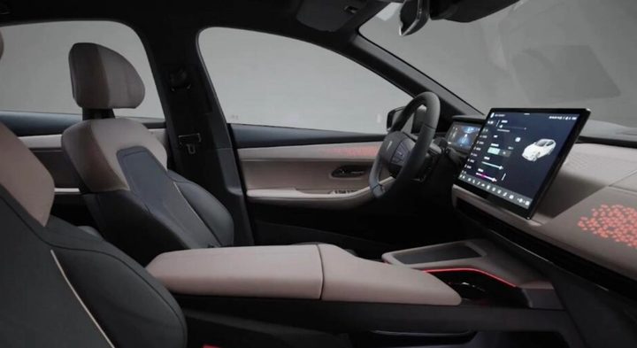 Además, el interior es muy minimalista y cuenta con una gran pantalla central horizontal como en el Model 3.