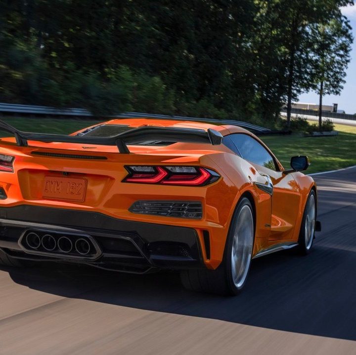 El Chevrolet Corvette Z06 2023 viene con un divisor delantero estándar y un alerón trasero estilo “labio” con borde erguido. Para quienes necesiten carga aerodinámica en serio, Chevrolet ofrece un paquete aerodinámico de fibra de carbono con un divisor frontal más grande, planos de inmersión en las esquinas delanteras, un enorme alerón más propio para las pistas que para ir al centro comercial.