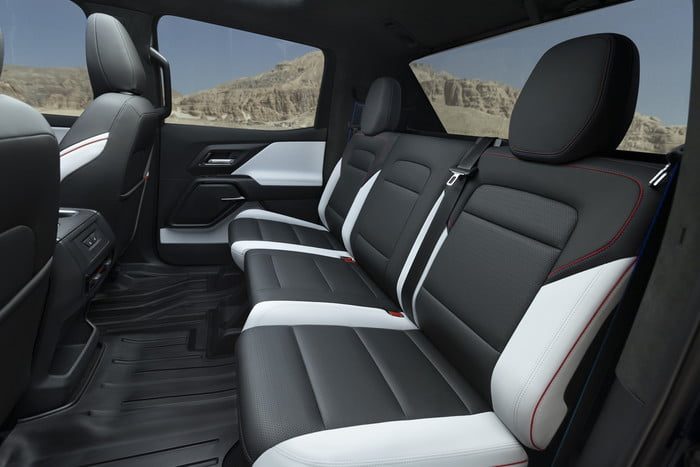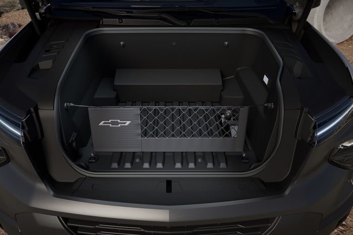 La cabina de pasajeros de la Silverado EV cuenta con un diseño futurista caracterizada por espacios altos y amplios, así como por luces tenues. No hay una separación entre la cabina y la caja de carga, y los diseñadores agregaron arbotantes detrás de las puertas traseras, así que, en otras palabras, luce como un sucesor distante de la Avalanche. Pero las similitudes entre ambas camionetas no terminan ahí: la caja de carga tiene 5.11 pies de largo, pero la versión RST puede incluir un panel plegable (llamado Multi-Flex Midgate) para un total de nueve pies.