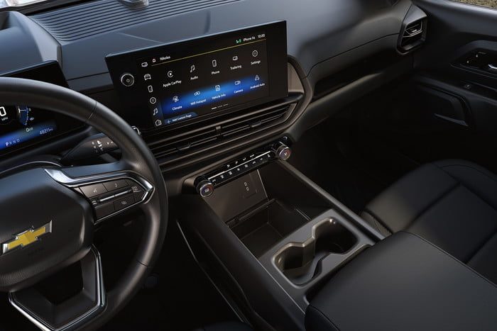 La tracción en las cuatro ruedas promete una mejor dirección y estabilidad de la Silverado a alta velocidad, mientras que el modo Super Cruise facilita un auténtica conducción manos libres (¡incluso al arrastrar un remolque!) en unas 200,000 millas de carreteras mapeadas de Norteamérica. Por su parte, la suspensión de aire adaptable te permite ajustar la altura de manejo en unas dos pulgadas. Y hay más tecnología en el interior: un tablero de 11 pulgadas, una pantalla en la parte superior de 14 pulgadas y una pantalla de infoentretenimiento de 17 pulgadas. Chevrolet también eligió la Silverado EV para inaugurar su plataforma basada en Linux, que separa el software del hardware para facilitar actualizaciones rápidas.