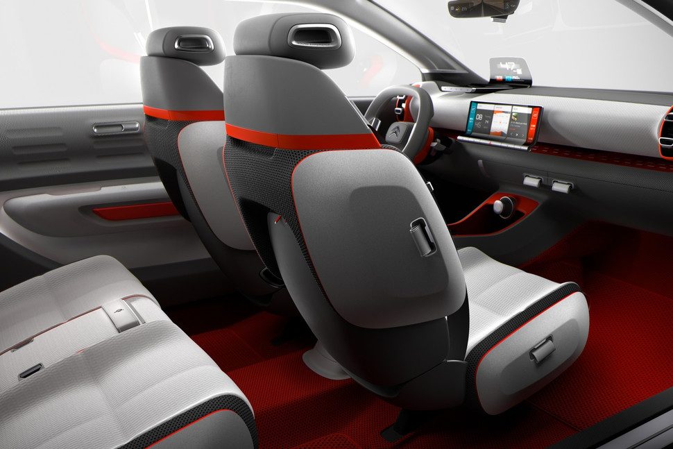 A la cabina se accede a través de un conjunto de puertas de apertura inversa (llamadas también “suicidas”). Una vez dentro, los pasajeros tienen un volante de un solo rayo, especie de homenaje a los modelos Citroën históricos, como el célebre DS. Además, cuenta con un panel tapizado en tela, una pantalla heads-up que reemplaza el cuadro de instrumentos, y una pantalla táctil de 12 pulgadas que contiene los mandos del sistema de información y entretenimiento. La unidad se puede dividir en dos, lo que significa que el conductor puede acceder tranquilamente a las direcciones de navegación mientras el copiloto ve una película.