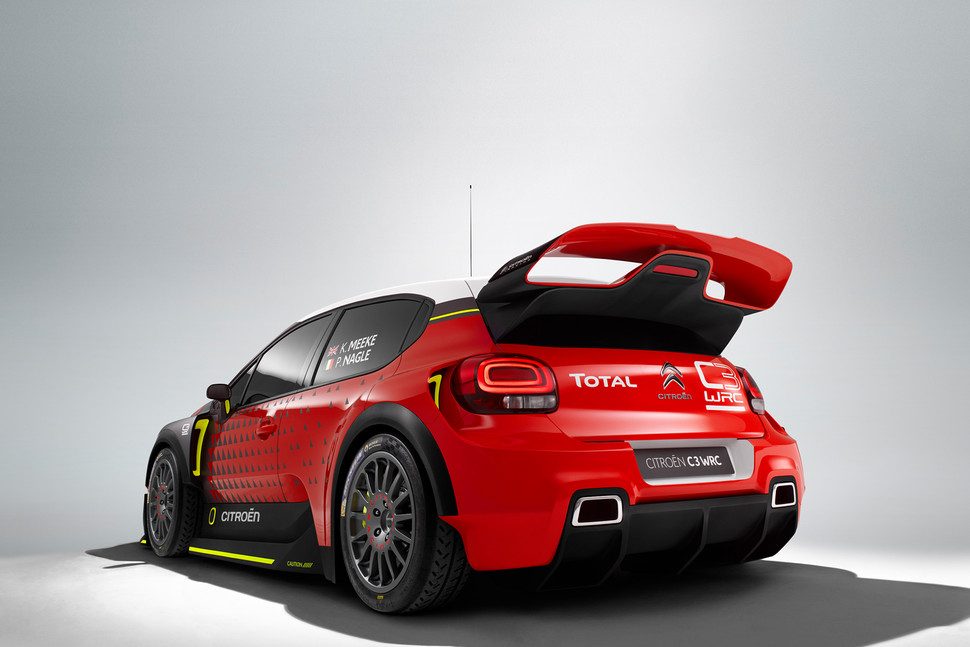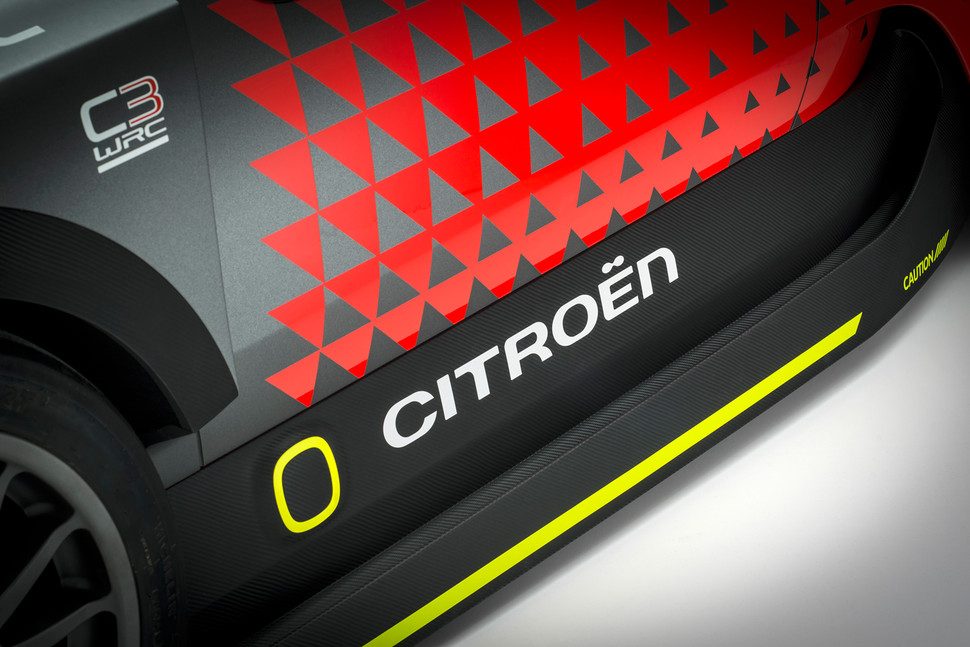 El C3 WRC que veremos en París esta casi listo, aún cuando está catalogado como “concepto”. Como suele ser el caso, cuenta con todas las prestaciones necesarias en un auto de carreras, así como una serie de componentes menores, tales como luces y piezas especiales. El C3 WRC posee un parachoques delantero profundo con separador, y una amplia toma de aire, guardabarros acampanados, faldones laterales, y una enorme alerón montado en la parte posterior del techo, el cual le proporciona carga aerodinámica adicional.