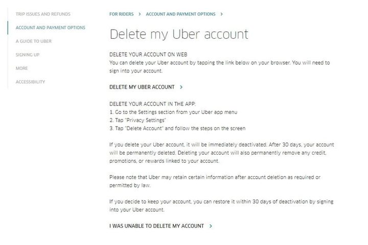 Por suerte, es relativamente fácil hacerlo desde la aplicación, aunque hay un pequeño inconveniente: al principio, solo puedes desactivar tu cuenta, pero después de 30 días de inactividad, el equipo técnico de Uber eliminará tu registro de forma permanente.