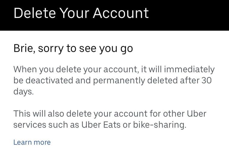 Por suerte, es relativamente fácil hacerlo desde la aplicación, aunque hay un pequeño inconveniente: al principio, solo puedes desactivar tu cuenta, pero después de 30 días de inactividad, el equipo técnico de Uber eliminará tu registro de forma permanente.