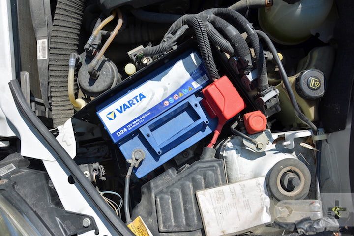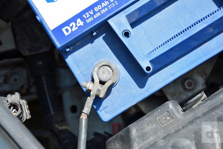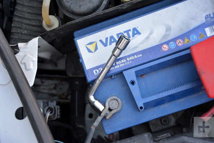 Pon la batería nueva y no te olvides de apretar el sistema de retención que retiraste antes. La mayoría de las baterías nuevas vienen con arandelas anticorrosión y grasa para mantener los terminales libres de suciedad. Quítala y luego conecta primero el terminal positivo de la batería, asegurándote siempre de que la llave no entre en contacto con otra parte metálica. Debe estar apretado, no pudiendo mover el extremo del terminal con la mano. Pero tampoco lo aprietes demasiado, o lo romperás. Repita estos pasos para el extremo negativo.