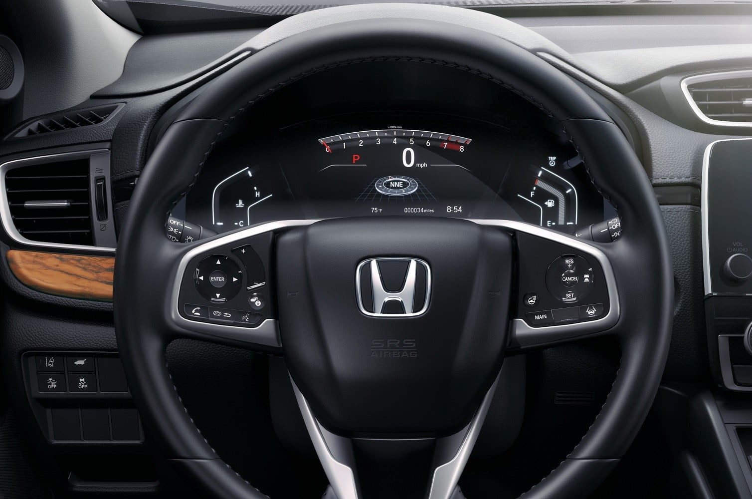 El CR-V tiene el mismo paquete de airbags, además de sistemas de control de estabilidad y tracción. Los compradores también pueden optar por Honda Sensing, un conjunto de ayudas electrónicas para conducir que incluyen mitigación de colisiones (que frena cuando detecta un choque inminente), mitigación de la salida de la carretera (que emite advertencias visuales y audibles si detecta que el automóvil se está desviando de la carretera), control de crucero adaptativo con seguimiento de baja velocidad y asistencia de mantenimiento de carril.