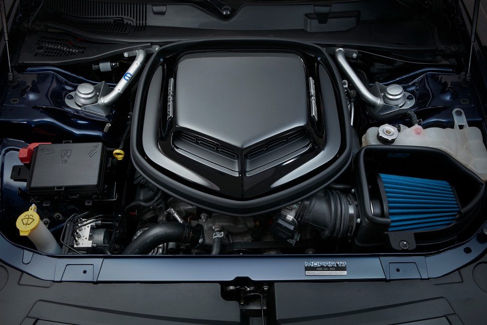 El Challenger Mopar ‘17 viene equipado con una transmisión manual de seis velocidades y el V8 de 6.4 litros Hemi utilizado en las versiones «SRT 392» del Challenger. El Hemi produce 485 caballos de fuerza y 475 libras-pies de torsión. La edición Mopar ’17 también viene con una toma de aire frío, barra puntal y frenos Brembo.