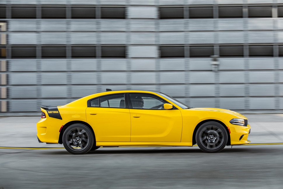 El Daytona 2017no tiene un alerón trasero tan enorme, pero sí tiene algunos gráficos retro, además de algunas mejoras que incluyen una entrada de aire frío, frenos mejorados, y un sistema de escape de alto rendimiento. Tanto el Daytona como el T/A están disponibles con un motor HEMI V8 de 5.7 litros que produce 375 caballos de fuerza y 410 libras-pie de torque, o un HEMI de 6.4 litros de 485 HP y 475 libras-pie. El Top de la alineación, tanto en el Charger como en el Challenger, sigue siendo el V8 SRT de 6.2 litros sobrealimentado y707hp, de Hellcat.