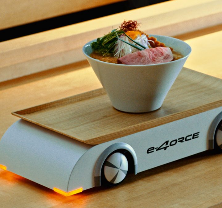 En el video se puede ver cómo una bandeja motorizada, que a todo efecto es una maqueta funcional a escala de un tren motriz eléctrico equipado con tecnología e-4ORCE, entrega un plato de ramen a una velocidad considerablemente rápida sin derramar ni una sola gota de caldo, manteniendo la integridad de la presentación de los fideos al suprimir el chapoteo y el movimiento que experimentaría la bandeja de un mesero.