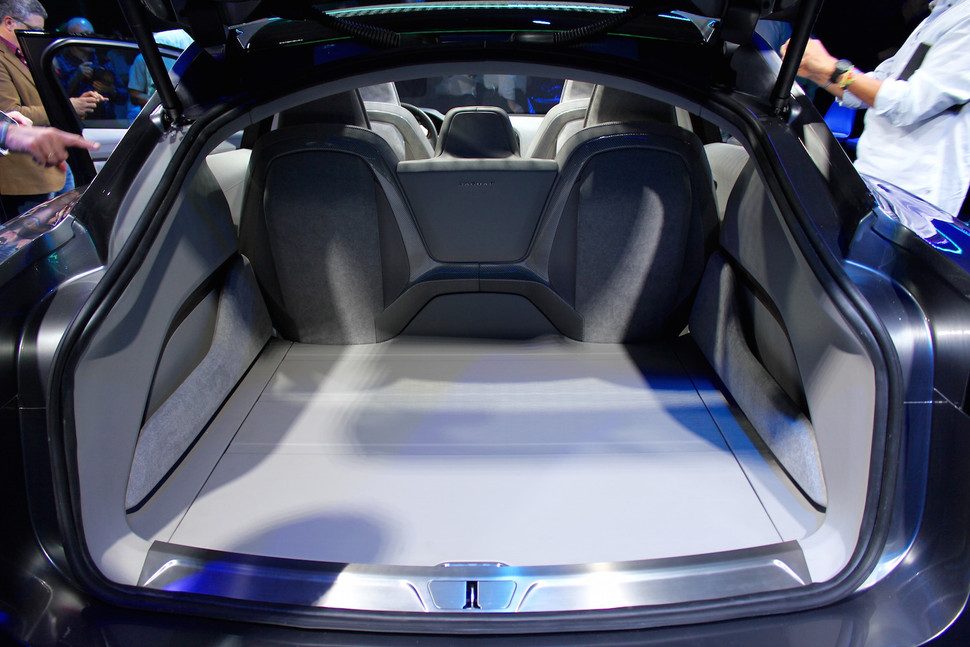 Sin un motor de combustión interna, la cabina se ha movido más adelante, al menos, más adelante que cualquier modelo actual de Jaguar. Se optó por mantener una parrilla más tradicional (que no es necesaria si no existe un motor que deba enfriarse), todo para mantener el linaje de su diseño con los vehículos actuales.