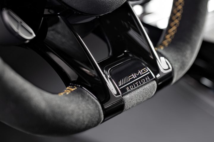 El paquete aerodinámico AMG para este Edition 1 incluye un divisor delantero más grande y flics integrados en el parachoques delantero, un difusor optimizado y un alerón trasero fijo, cuyo ángulo se ajusta mecánicamente. De este modo, el conductor puede elegir el equilibrio de elevación y las características de conducción, adaptándose a las preferencias individuales o circunstancias específicas del camino. La interacción perfectamente coordinada entre los diversos elementos sirve para optimizar la eficiencia aerodinámica.