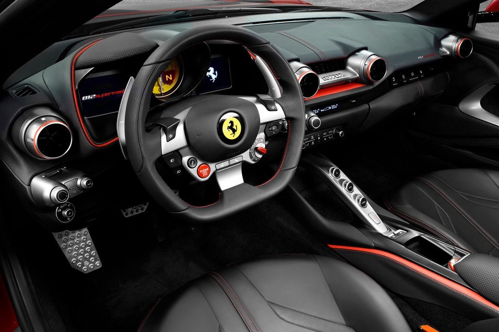 Todo eso hace que el 812 Superfast sea… bueno, eso mismo: Super Rápido. Ferrari afirma que pasa de 0 a 62 mph en 2.9 segundos, alcanzando una velocidad máxima de 211 mph. Para dominar toda esta potencia, el Superfast recibe el sistema de dirección de cuatro ruedas Ferrari Virtual Short Wheelbase del F12tdf, así como el sistema Side Slip Control. Es también el primer Ferrari con dirección asistida eléctrica, la cual ha proliferado muchísimo en los carros modernos, todo a pesar de las quejas de los entusiastas por la pérdida de sensaciones en comparación con las configuraciones hidráulicas más clásicas.