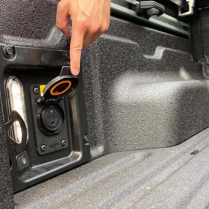 También hay dos tomacorrientes de 110 voltios y 400 vatios disponibles en ciertas versiones, y en los laterales internos de la caja de carga hay códigos QR que llevan a una página web con guías para proyectos de bricolaje especiales para Maverick.