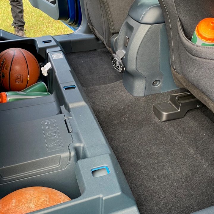 Los cojines de los asientos traseros esconden unos convenientes compartimientos de carga configurables que ayudan a mantener el orden en la cabina. Allí conseguimos siete muescas a las que llamadas FITS, para asegurar accesorios ofrecidos por Ford, con una extra ubicada en el extremo trasero de la consola central.
