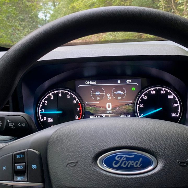Ford nos invitó a recorrer un circuito todoterreno con subidas de 12 grados y un suelo irregular a bordo de una Maverick con el paquete todoterreno FX4, que ofrece los modos de manejo Normal, Slippery, Sand, Mud/Ruts y Tow/Haul (normal, resbaladizo, arena, barro/surcos y remolque/carga, respectivamente), así como una suspensión calibrada para todoterreno, neumáticos especiales y refuerzos en la parte de abajo del vehículo.