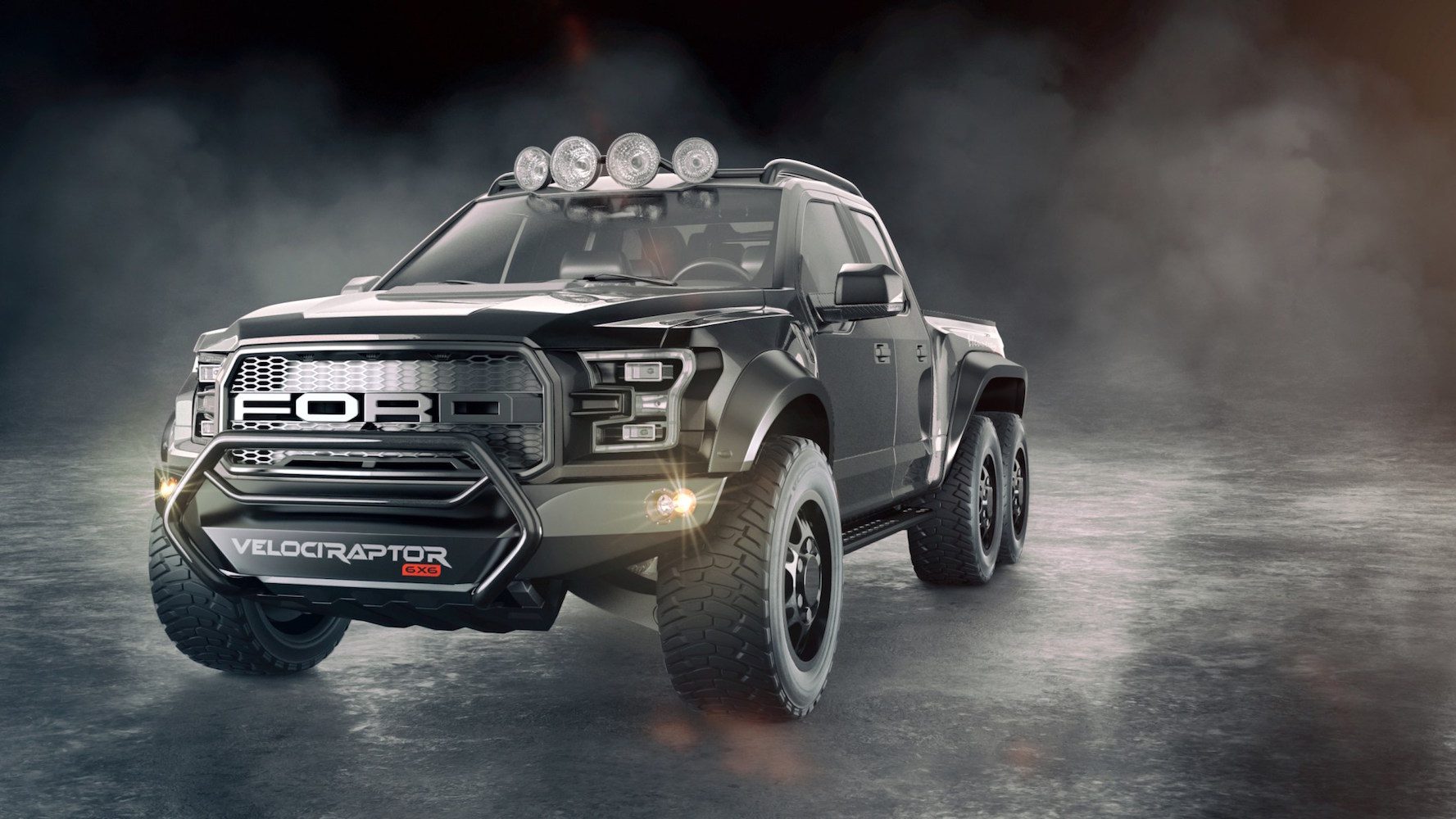 La camioneta se llama VelociRaptor 6 × 6 (sí: no es broma), y se basa en la versión de cuatro puertas de la segunda generación Raptor. Hennessey ha añadido un tercer eje y una cama más larga, aunque las modificaciones no se detienen allí. La camioneta ha incorporado un parachoques totalmente nuevo, cuatro faros antiniebla por encima del parabrisas, llantas de aleación de 20 pulgadas envueltas por neumáticos todo terreno, un bloqueo de ejes traseros, y una suspensión totalmente ajustable fabricada por Fox.