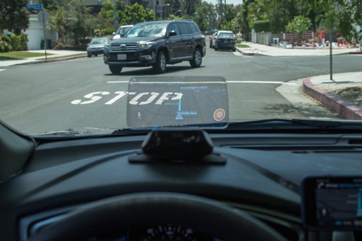 La pantalla frontal portátil de Hudway se pone en tu tablero y refleja de forma inalámbrica la pantalla de su teléfono inteligente frente a tus ojos. Sigue siendo uno de nuestros HUD favoritos porque aún puedes controlar las funciones básicas del teléfono en tu dispositivo mientras lo usas, lo que significa que puedes administrar tus llamadas, cambiar de pista o compartir tu ubicación mientras vas viendo las instrucciones en el HUD. La lente transparente enfoca la imagen virtual a unos nueve pies frente a ti, y es perfectamente visible tanto por la noche como durante el día.