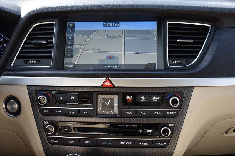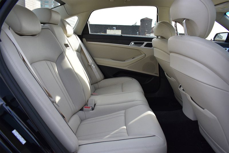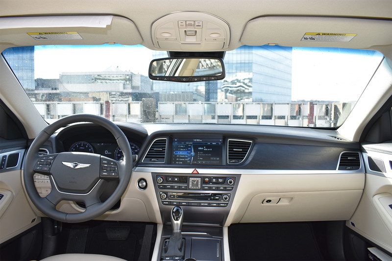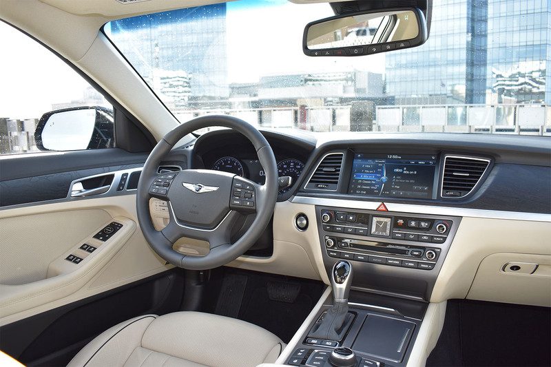 La tranquilidad no es el único atractivo que posee la cabina. Al igual que el exterior, el diseño interior se mantiene en gran medida sin cambios desde el antiguo Genesis de Hyundai, el cual no necesitaba de muchos retoques. En contraste con el interior de otros carros de lujo, el diseño del G80 es simple y libre de extravagancias innecesarias. El tablero incorpora muy bien una pantalla táctil de 9.2 pulgadas sin ningún tipo de protuberancias ni formas extrañas. El acabado de madera se ve realmente bien, e incluso las piezas de plástico parecen ser de alta calidad.