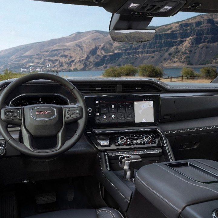 GMC solo mostró las cabinas de las variantes nuevas Denali Ultimate y AT4X, pero los cambios básicos de diseño serán aplicados a todas las variantes de la alineación. Ahora, en vez del típico diseño abultado con un espacio central para los controles, GMC dotó a la Sierra de un tablero de instrumentos de diseño angular donde domina la horizontalidad, logrando un aspecto general limpio y hermoso en reemplazando el desorden visual del modelo anterior.