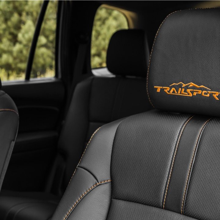 En la cabina conseguimos las infaltables costuras en contraste de color naranja en el volante, los paneles de las puertas y los asientos, con el logotipo de TrailSport bordado en los reposacabezas de los asientos delanteros. Honda dice que la Passport TrailSport es la primera de una serie de camionetas que serán producidas con ese emblema.