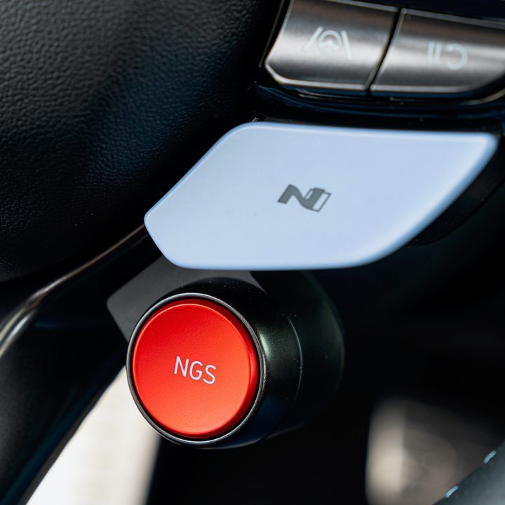También se puede optar por una transmisión automática de doble embrague de ocho velocidades que permiten aumentar por un momento las revoluciones del turboalimentador y así lograr una potencia mayor (10 caballos de fuerza extra para alcanzar 286). Hyundai llama esta función NGS por N Grin Shift o Cambio Sonrisa N, un nombre que explica más lo que se siente cuando entra en acción que lo que hace realmente el sistema.