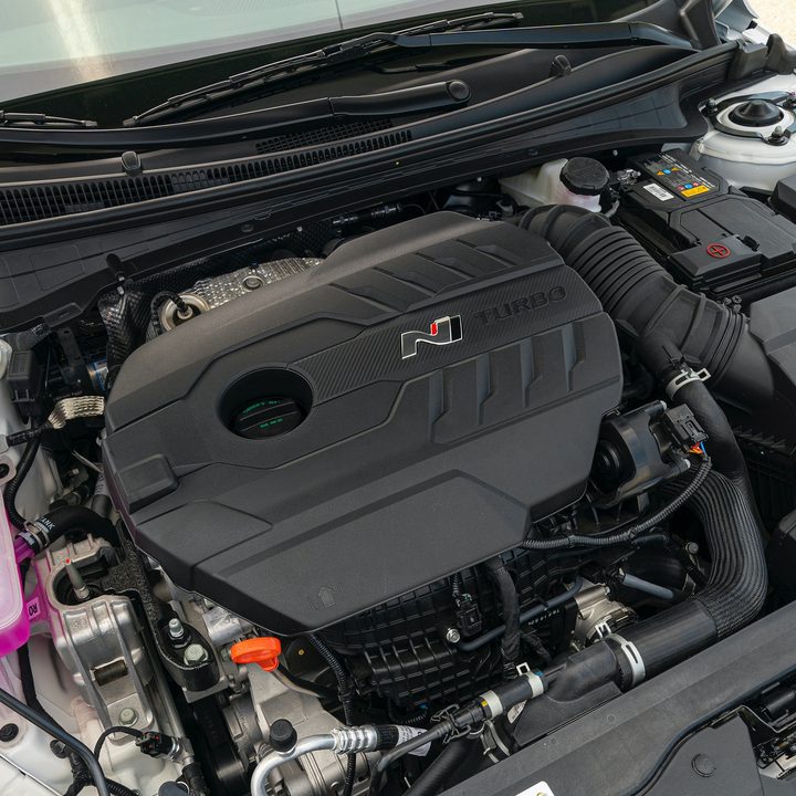 El ruido del motor de un cuatro cilindros turboalimentado nunca ha sido especialmente inspirador, pero Hyundai, consciente de la importancia que puede llegar a tener una aparente frivolidad como esta, decidió agarrar el toro por los cuernos y agregar válvulas variables en el escape que permiten filtrar menos o más ruidos según el gusto del conductor. Esto también es posible gracias al N Sound Equalizer, un sistema que aumenta y complementa el sonido del motor a través de los parlantes, que incluyen un modo que imita a los autos de competencia de Hyundai, solo para el disfrute de los ocupantes sin molestar a los demás transeúntes.