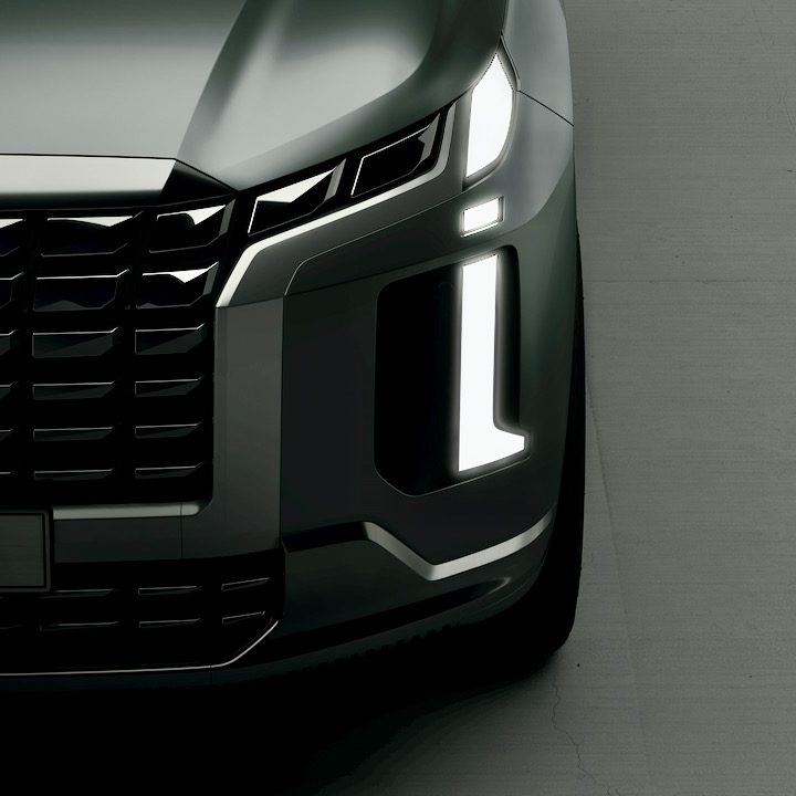 La imagen parcial del frontal de la nueva Palaside muestra claramente unas luces de manejo diurno led posicionadas en forma vertical en los extremos laterales, que harán fácil distinguirla de otros autos de tamaño similar. Hyundai dice en el escueto comunicado de prensa que acompañó a las imágenes que las luces le dan al carro un “atractivo técnico de vanguardia”.