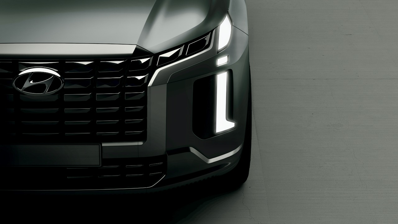 La imagen parcial del frontal de la nueva Palaside muestra claramente unas luces de manejo diurno led posicionadas en forma vertical en los extremos laterales, que harán fácil distinguirla de otros autos de tamaño similar. Hyundai dice en el escueto comunicado de prensa que acompañó a las imágenes que las luces le dan al carro un “atractivo técnico de vanguardia”.