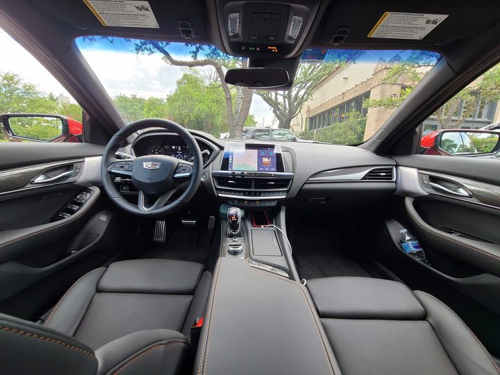 Tras la revisión del Cadillac CT-5 en MotorTech, probamos una unidad pintada con el tono Velocity Red, que supuestamente lo hace ver más rápido, mientras que el interior lucía un Jet Black. La mezcla lo hacía parecer un verdadero deportivo.