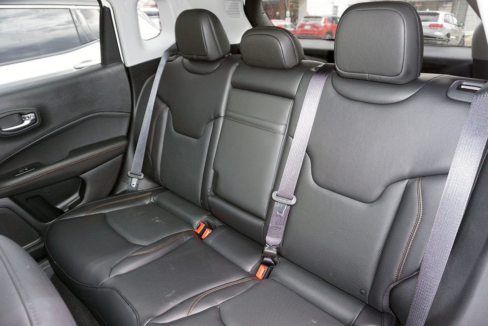 el espacio para los asientos traseros es generosa tratándose de un SUV compacto, e incluso con los asientos de segunda fila en uso, hay todavía una buena cantidad de espacio de carga. Se puede obtener un Compass con techo panorámico de dos paneles que cubre ambas filas de asientos. El techo solar es opcional en los acabados Limited, Trailhawk y Latitude.