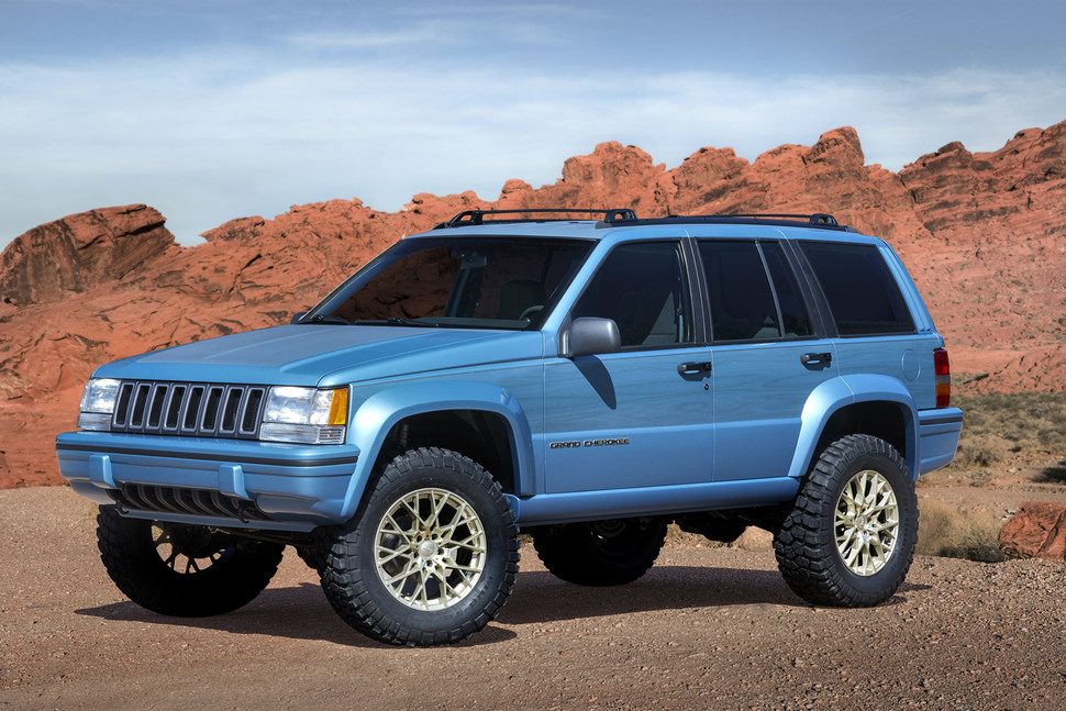 El concepto Grand One fue fabricado para celebrar el 25 aniversario del original, el Grand Cherokee ZJ. Jeep comenzó el proyecto mediante la compra de un modelo de 1993 encontrado en Pennsylvania vía Craigslist, con 100,000 millas en el reloj, de acuerdo con Motor1. El SUV recibió unas nuevas ruedas de encaje de 18 pulgadas envueltas por neumáticos Mud-Terrain, un kit de cuerpo personalizado que incluye unos nuevos guardabarros, una suspensión que lo eleva 2 pulgadas más, y una capa de pintura metálica en azul claro.