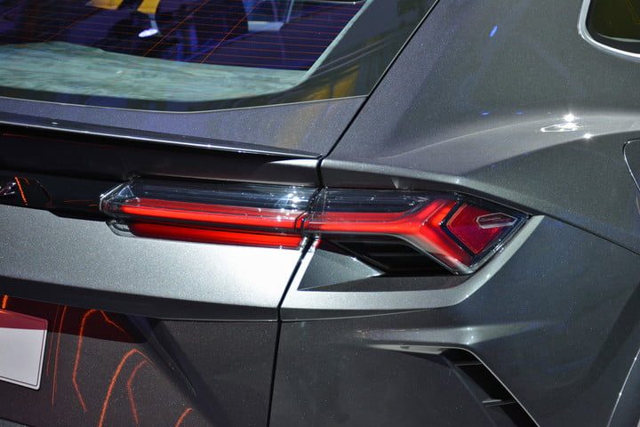 La línea de techo descendente y sus ancas pronunciada ya las habíamos visto, aunque se ve que la parte trasera del modelo de producción es un poco más larga que la del concepto, una concesión probablemente hecha en nombre de practicidad. Se trata de un Lamborghini de manejo diario, después de todo. Pero eso no significa que el toro furioso se haya vuelto blando, no; el Urus será el Lamborghini del segmento SUV, y sin duda se verá y escuchará como tal.