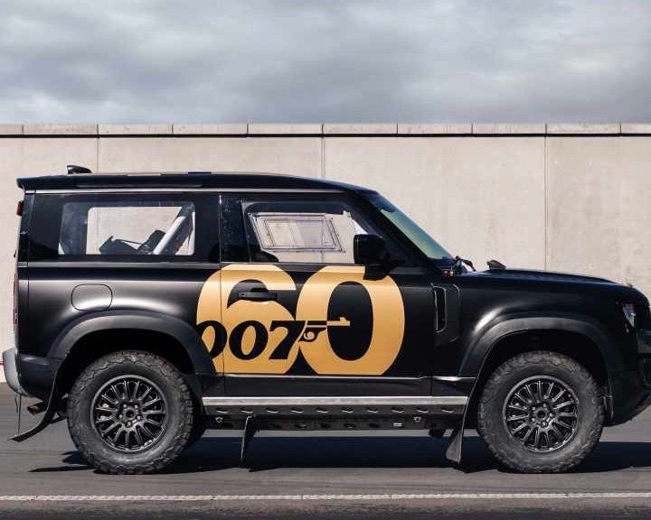 La Defender 90 tiene una carrocería negra decorada con los nombres de todas las películas de James Bond pintados en dorado en el capó y el portón trasero, mientras que el techo y las puertas están decorados con enormes letreros dorados con un “60” y los números 007 sobrepuestos en negro.