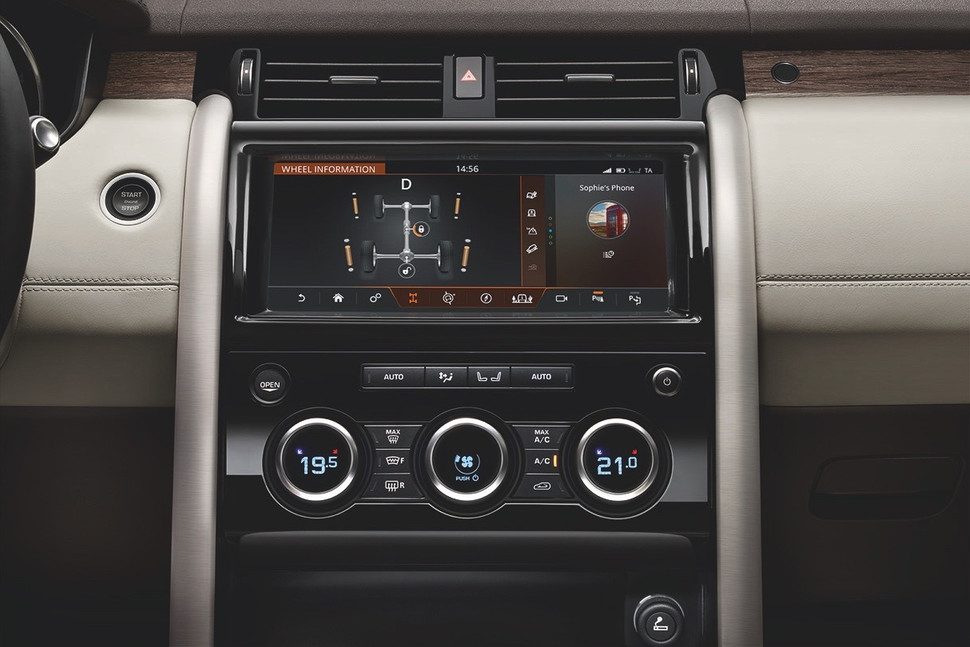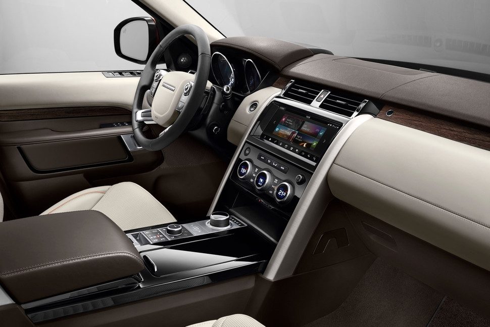 En el interior nos encontramos siete plazas, con una tercera fila adecuada para adultos. Las segunda y tercera fila pueden plegarse mediante interruptores en la cabina, o incluso a distancia. Posee además una pantalla de 10 pulgadas, la cual es parte del sistema InControl Touch Pro, que en el Discovery incluye también una función de conexión Wi-Fi que puede soportar hasta ocho dispositivos, así como una aplicación de control remoto que permite a los propietarios supervisar sus vehículos a distancia.
