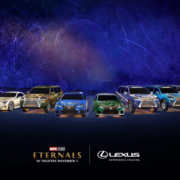 Aún está por verse si los demás Eternals aparecerán en la pantalla detrás del volante de un Lexus, pero de cualquier manera la marca de lujo de Toyota preparó 10 versiones de sus modelos con cubiertas inspiradas en cada uno de los personajes, los cuales podrán ser vistos en varios eventos promocionales, incluido el estreno mundial de la película.