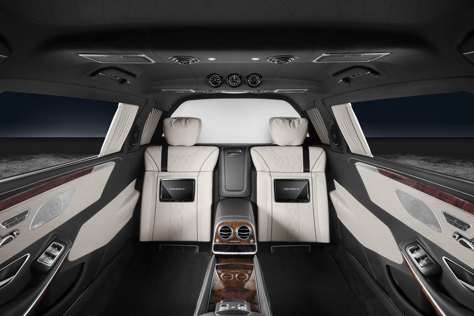 Los detalles son asombrosos. Mercedes añadió motores eléctricos para ayudar a los ocupantes a abrir y cerrar las puertas traseras, que son mucho más pesada de lo normal debido a la armadura que llevan dentro, así también como las ventanas traseras, que son operadas hidráulicamente.