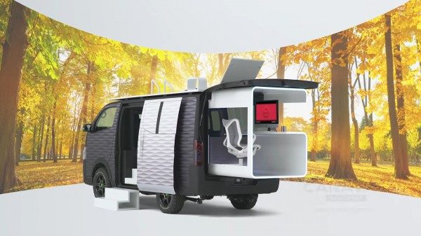 Nissan pensó en esta posibilidad y la hizo realidad con su nueva NV350 Caravan Office Pod, presentada recientemente en el Salón del Automóvil de Tokio.