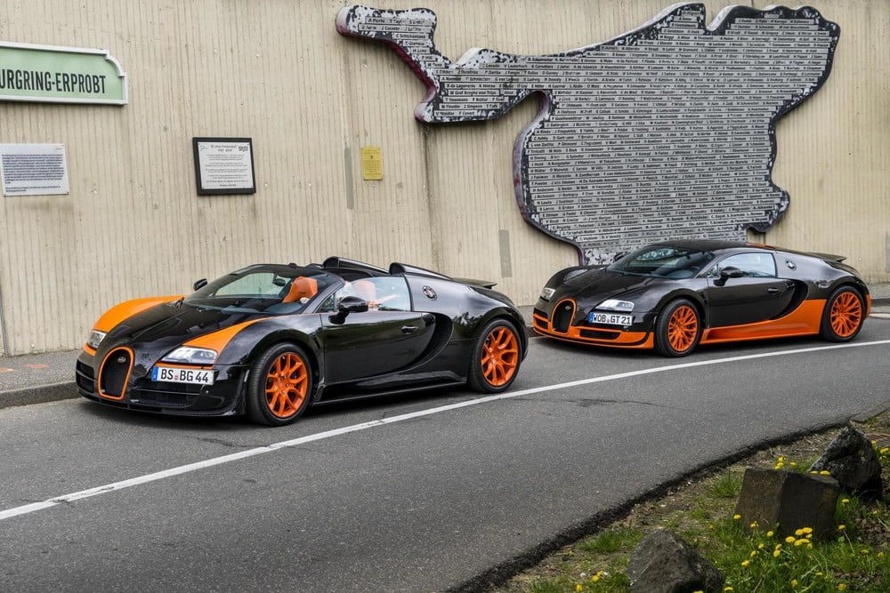 Tiene una velocidad de 268 mph (431km/h), registrados en la pista Volkswagen Ehra-Lessein. Es reconocido por el libro Guinness de récords como el auto de producción más rápido del mundo. El Veyron Grand Sport Vitesse es el auto convertible más rápido, con una velocidad máxima de 254 mph (408 km/h).