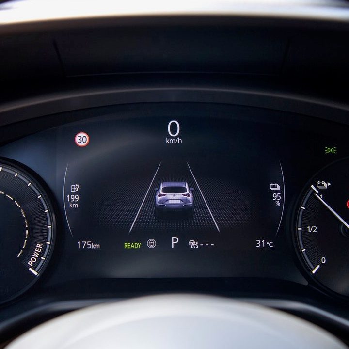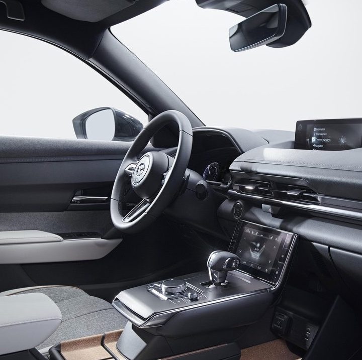 La Mazda MX-30 está motorizada por un único motor eléctrico que genera 143 caballos de fuerza, impulsa las ruedas delanteras de cero y que puede acelerar a la crossover de 0 a 60 mph en aproximadamente 9 segundos. El motor está alimentado por una batería liviana de 35.5 kWh.