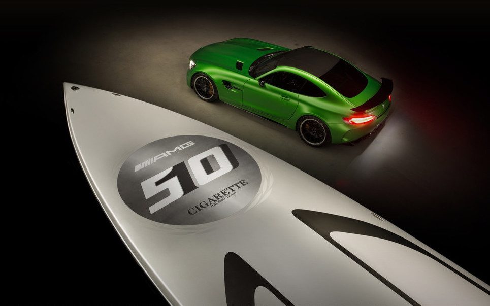 El barco posee la versión de la pintura Green Hell Mango del AMG GT R. El color es una referencia al apodo de la pista alemana de Nürburgring, lugar en donde se desarrolló el AMG GT R. Los diseñadores también agregaron un logotipo especial, conmemorando tanto el 50 aniversario de Mercedes AMG como el 10º aniversario de la colaboración del fabricante con Cigarette Racing. Los diseñadores de AMG también dieron a los asientos del barco un patrón geométrico especial.