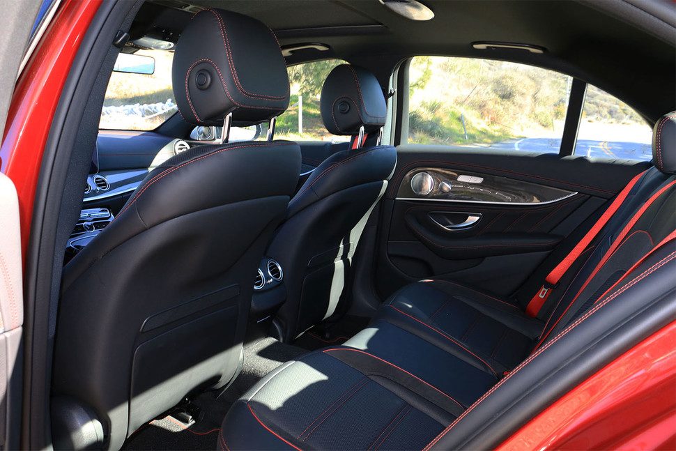 Al igual que todos los vehículos Clase E, el E43 viene equipado con un sinnúmero de características tecnológicas. Si bien el control de crucero adaptativo con advertencia de colisión frontal y frenado automático de emergencia viene estándar, puede también equiparse con el Premium 3 Package, un grupo de opciones de $7,300 que incluyen otras características de seguridad como el Evasive Steering Assist y Active Lane Change Assist. Un puñado de opciones de comodidad están incluidos en el paquete, como masaje de los asientos delanteros y la carga inalámbrica para dispositivos móviles.