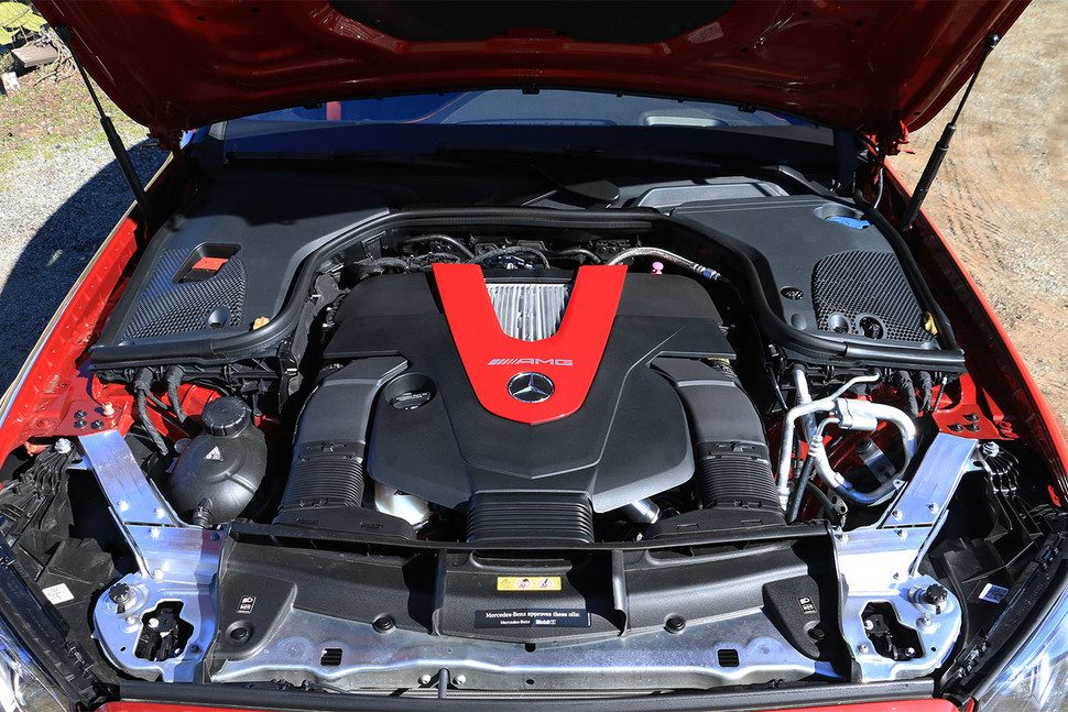 El modo de conducción Dynamic Select de AMG permite a los conductores cambiar una serie de atributos del vehículo sobre la marcha, incluyendo la rigidez de los amortiguadores ajustables o los tiempos de cambio de transmisión. Obviamente, la potencia de frenado también se ha mejorado con rotores de 14.2 pulgadas.