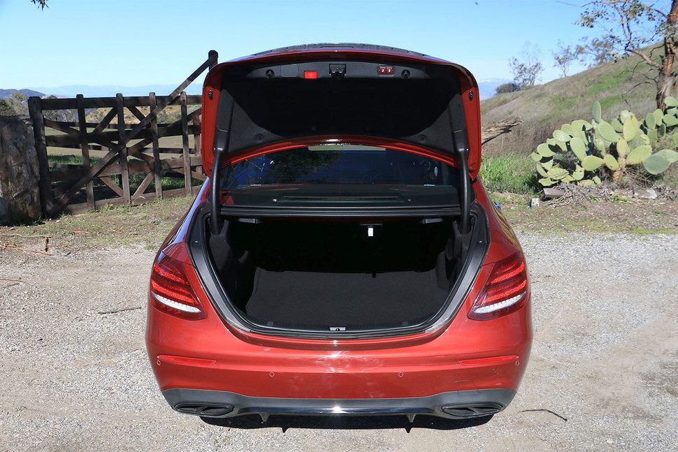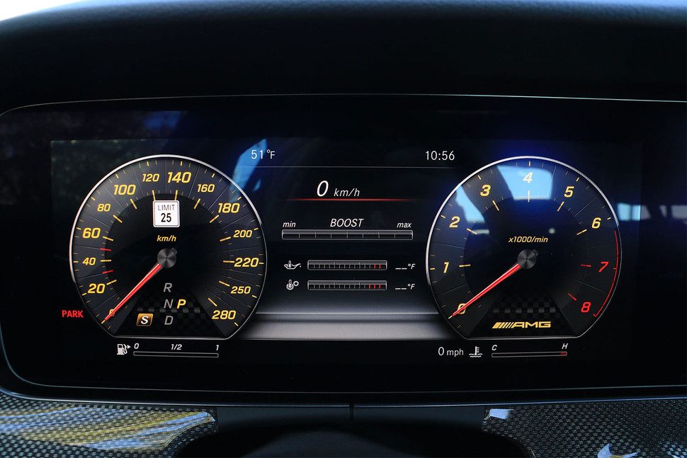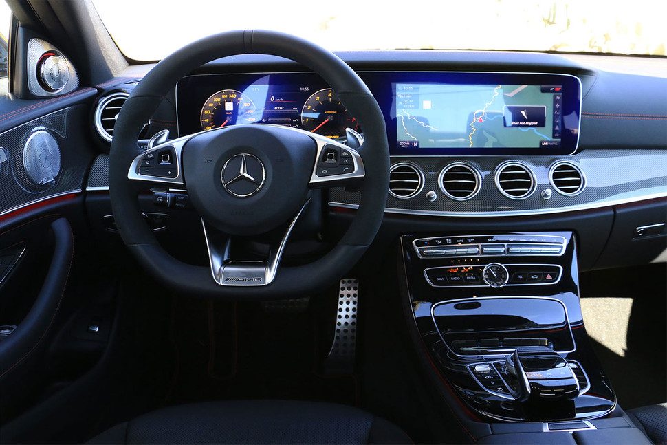 Al igual que todos los vehículos Clase E, el E43 viene equipado con un sinnúmero de características tecnológicas. Si bien el control de crucero adaptativo con advertencia de colisión frontal y frenado automático de emergencia viene estándar, puede también equiparse con el Premium 3 Package, un grupo de opciones de $7,300 que incluyen otras características de seguridad como el Evasive Steering Assist y Active Lane Change Assist. Un puñado de opciones de comodidad están incluidos en el paquete, como masaje de los asientos delanteros y la carga inalámbrica para dispositivos móviles.