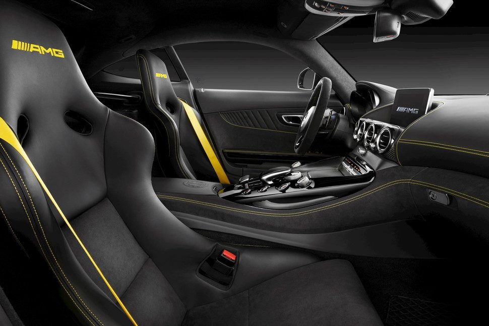 Debajo de toda esta llamativa carrocería, AMG ha hecho uso de más de algún truco aerodinámico. En la parte baja, delante del motor, posee una aleta de fibra de carbono que se gira hacia abajo cuando el auto alcanza las 50 mph en modo de carrera. Esto cambia el flujo del aire y ayuda a que el vehículo se mantenga adherido al asfalto. También hay persianas activas en la parrilla, las cuales se cierran para reducir la resistencia, y se abren en caso de que se necesite un flujo extra de aire para enfriar el motor. En la parte trasera, AMG ha añadido un doble difusor con el fin de ventilar el calor de los gases de escape.